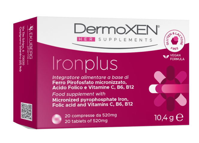 DermoXEN Ironplus – это биологически активная добавка к пище, содержащая обладающий уникально высокой биодоступностью микронизированный пирофосфат железа, фолиевую кислоту, витамин C, витамины B6 и B12, эффективная при дефиците железа и для поддержания адекватного потребления питательных веществ.